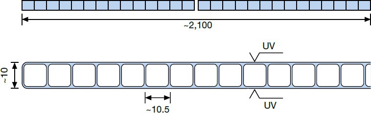 A standard Makrolon üregkamrás polikarbonát lemezek belső kialakítása a klasszikus, két kamrafalas megoldást követi. Az 1,7 kg/m2-es terméksúly, és az ebből adódó vastag külső kérgek jó időjárás- és jégverésállóságot biztosítanak. A lemezek mindkét oldala UV védett (kivéve a CC víztiszta és az IQ Relax színeket).